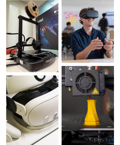 This zone enables students to design and prototype innovative products and services, with a 3D printing lab.