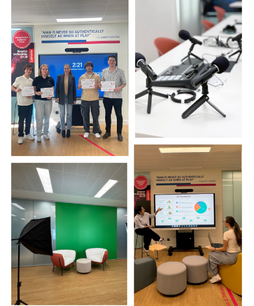 Designed for presentation, performance, and communication, this zone allows students to showcase their ideas using immersive and professional-grade media technologies.