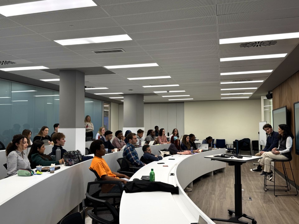 At our Madrid campus, students participated in a dynamic Employability Bootcamp comprising three engaging sessions. Ignacio del Pozo Sierra, COO at IBM, shared strategies for embracing disruption and leveraging emerging technologies to develop high-performance and leadership skills. Students also had the opportunity to connect with Cristina Marqués from IBM’s University Relations team, continuing conversations and asking questions about career opportunities in the sector. Our own faculty member, Professor Mike Beattie, explored the opportunities and risks of artificial intelligence in professional contexts. Finally, Guillermo Casado from Accenture and Jimena Miniño from EY offered insider advice on breaking into the Big 4, sharing their personal experiences as young professionals navigating recruitment processes, early career challenges, and what it takes to succeed in competitive consulting environments.
